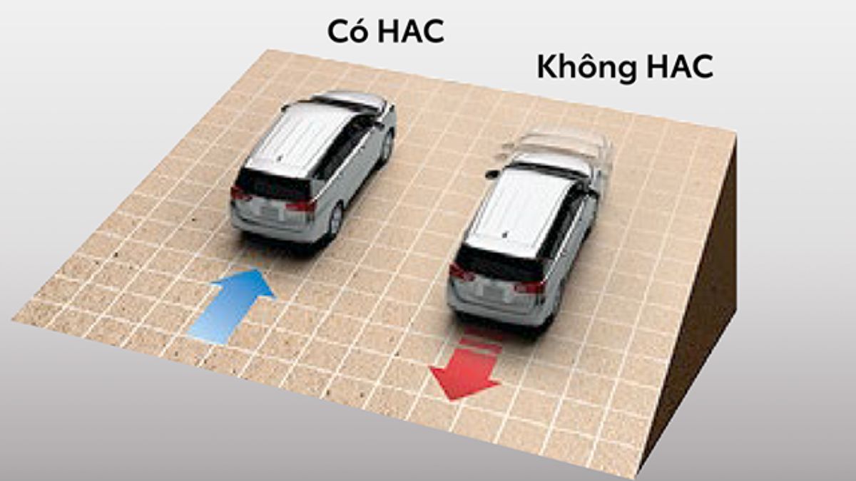Hệ thống hỗ trợ khỏi hành ngang dốc (HAC): Hỗ trợ tự động giữ phanh khi người lái nhả chân phanh chuyển sang đạp chân ga lúc khởi hành ngang dốc, ngăn không cho xe bị trôi ngược về phía sau khi khởi hành trên các địa hình nghiêng.