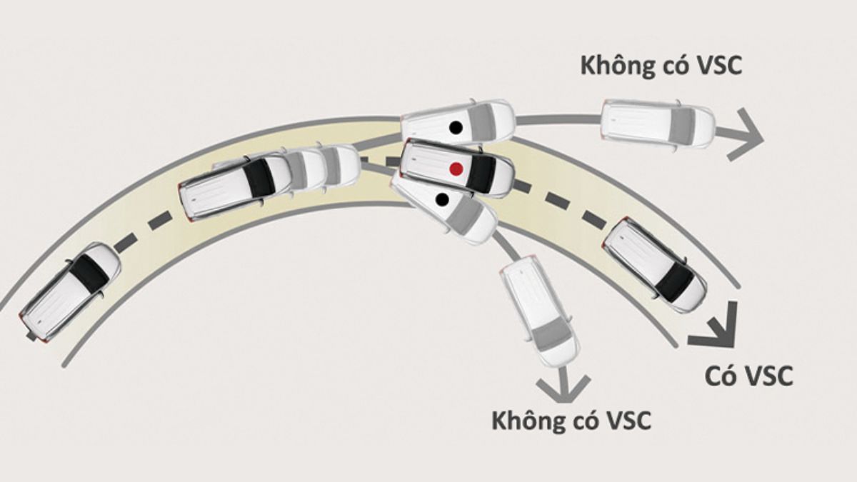 Hệ thống ổn định thân xe (VSC): Hệ thống tự động giảm công suất động cơ và phanh bánh xe khi phát hiện nguy cơ xe bị trượt, giúp xe vận hành ổn định, đặc biệt khi xe chuyển hướng đột ngột để tránh chướng ngại vật ở tốc độ cao.